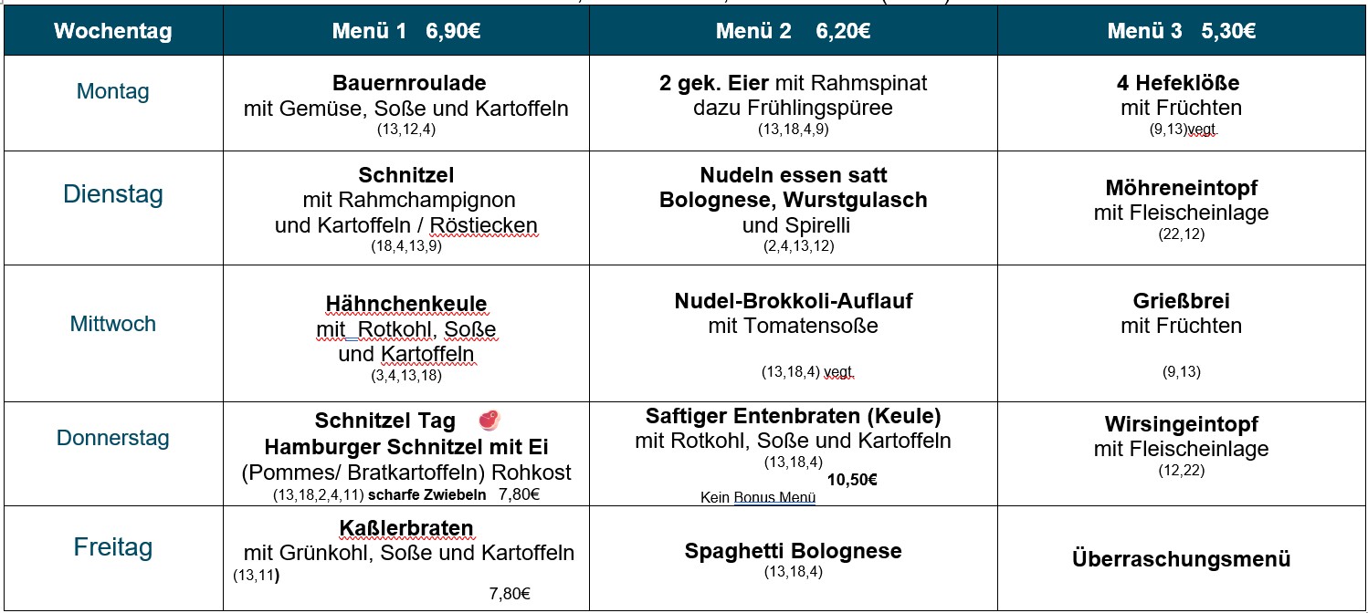 Hier unsere Speisepläne der nächsten zwei Wochen: